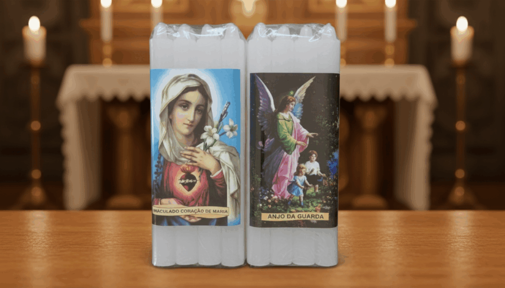 Produzimos velas religiosas com cuidado para rituais e orações.